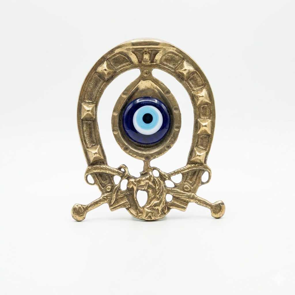 Pirinç Döküm Duvar Süsü Nazar Boncuklu At Nalı 19Cm, geleneksel Türk motiflerini modern bir dokunuşla birleştiren anlamlı bir dekoratif üründür. At ve kırbaç figürlerinin birleşimi, hem zarif bir estetik sunar hem de nazarlık olarak kötü enerjilerden korunma amacına hizmet eder. Bu şık obje, evinizde veya ofisinizde hem dekoratif hem de koruyucu bir sembol olarak yer alabilir.