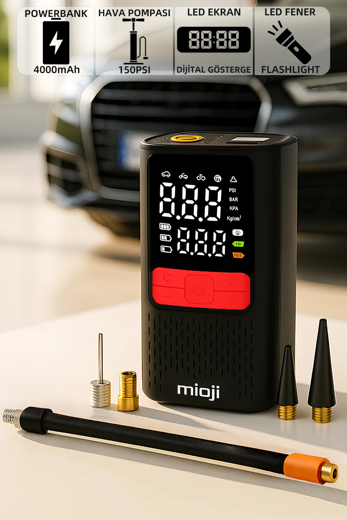 Acil durumlarda ve günlük ihtiyaçlarınızda yanınızda taşıyabileceğiniz en güvenilir yardımcınız: Mioji Mio 11C Hava Pompası. 150 PSI’ye kadar güçlü basınç kapasitesi sayesinde aracınızın, motosikletinizin veya bisikletinizin lastiğini dakikalar içinde güvenle şişirir. Taşınabilir yapısıyla kolayca yanınızda taşınır ve lastik basıncınızı anında ayarlayarak güvenli sürüş sağlar.