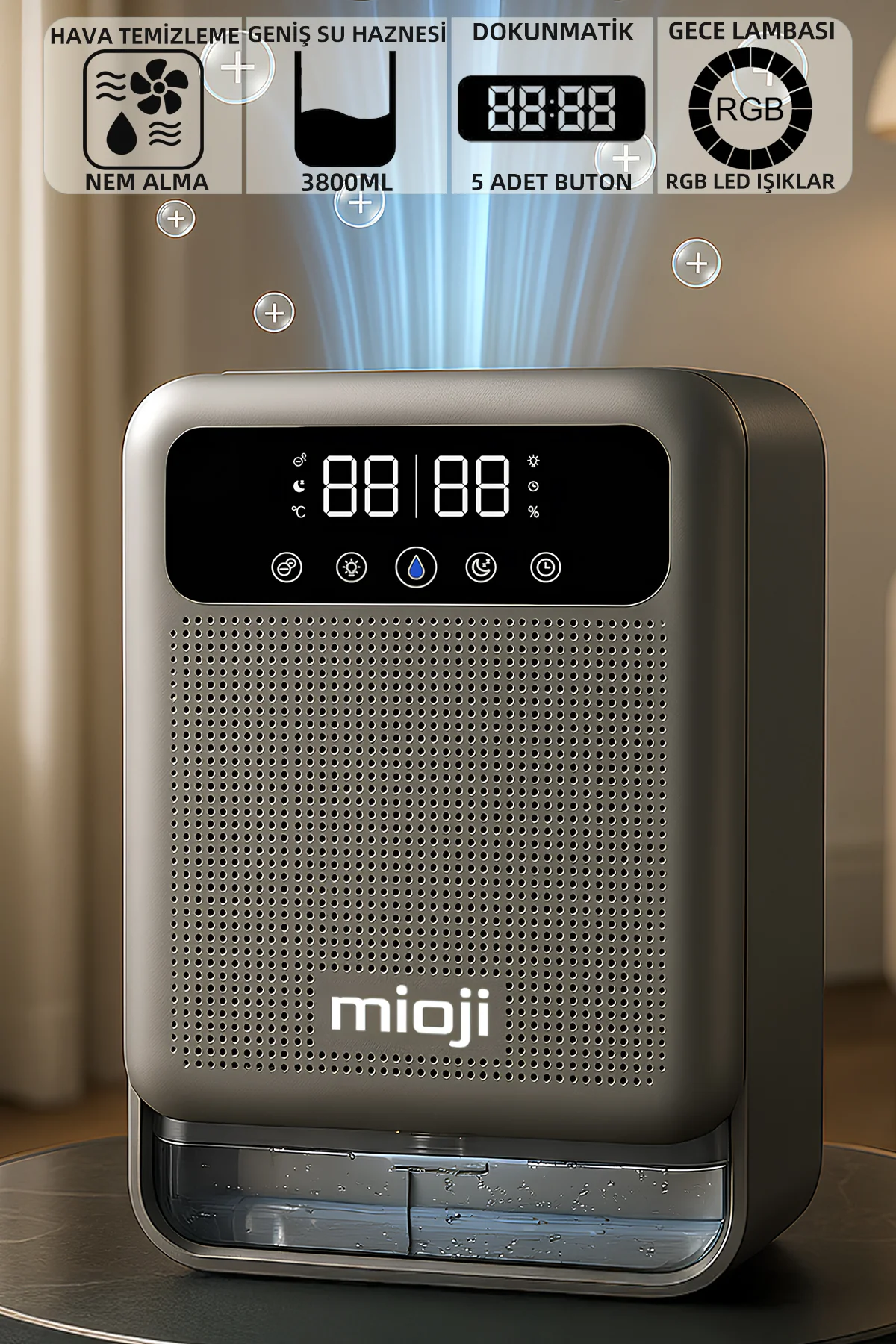 Mioji Mio 30NEC Pro Nem Alma ve İyon Hava Temizleme Cihazı, yüksek nemin yol açtığı sorunlara karşı tek ve eksiksiz bir çözüm sunar.